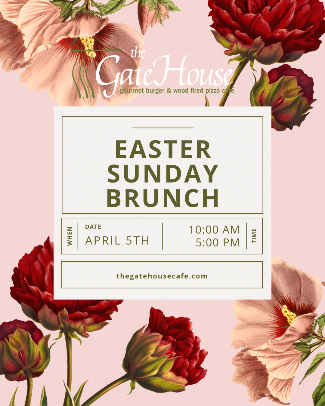 Easter Day is April 5th and we are OPEN for brunch and early dinner, 10am -5pm. 🐇 Reservations required. 🌸